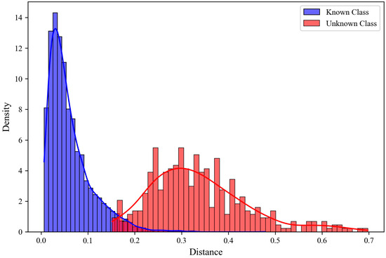 Distance/metric learning-based methods focus on optimizing the structure of the feature space. Their core hypothesis is that samples from known classes form compact clusters within this space, while samples from unknown classes lie far away from these clusters. Discrimination is performed by calculating the distance between a sample’s features and the centroids or prototypes of known classes. For instance, reference [32] proposes a class anchor clustering loss to enhance intra-class compactness, reference [33] combines center loss with classification loss to train the model and employs a fixed threshold to distinguish unknown classes, reference [34] integrates denoising autoencoders with deep metric learning for unknown class detection, reference [35] utilizes triplet loss to train the model and combines it with KNN for open-set discrimination and classification, and reference [36] introduces EVT on top of Feature Distance Measurement (FDM) to improve anomaly detection performance. A core challenge for such methods lies in constructing theoretically grounded open-set decision boundaries. While metric learning can effectively establish discriminative margins between known classes, it does not inherently model the overall boundary of the known feature space. Consequently, in practice, unknown samples are often rejected by setting distance-based thresholds, which are mostly determined through empirical methods rather than derived from the statistical properties of the data. This approach directly results in poor reliability of the final decision boundaries and weak generalization ability.