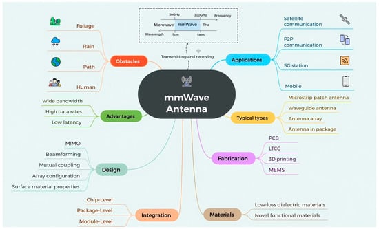 Overview of obstacles, advantages, design, integration, materials, fabrication, typical types, and applications of mmWave antennas.