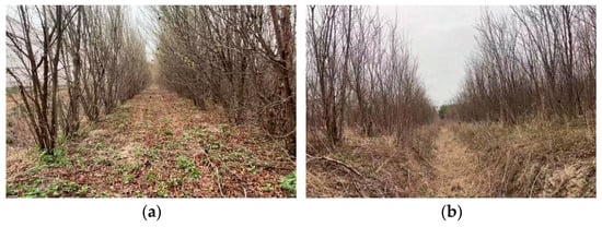 Pomegranate orchard environment: (a) Regular planting pattern; (b) Slope covering planting pattern.