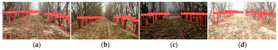 A large amount of image data was collected in pomegranate orchard environments, totaling 4150 images after data augmentation, with 70% allocated for training, 20% for validation, and 10% for testing. Tree trunks in each image were annotated using the Labelimg (1.7.1) annotation tool. The training parameters were configured as follows: