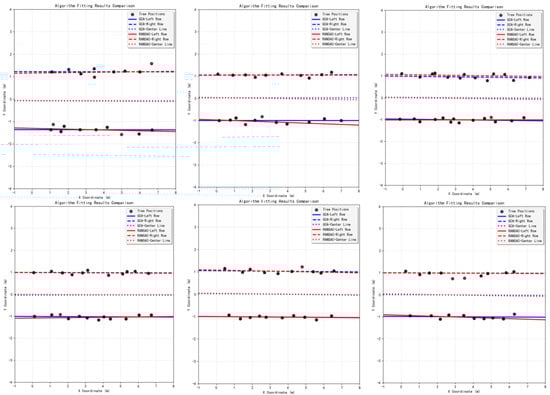 As shown in Figure 16, a comparison of the visualization of fitting performance between the two algorithms in experiments is presented, where the blue line represents the fitting performance of the GCA and the red line represents the fitting performance of the RANSAC algorithm.
