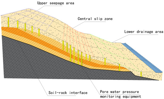 Landslides are a highly destructive type of geological disaster, particularly common in mountainous areas, where extreme weather events and periodic runoff intensify slope instability [1]. According to the Sixth Assessment Report of the Intergovernmental Panel on Climate Change, the frequency of extreme precipitation events in mid-latitude mountainous regions has increased by 35% since 2000, which is associated with a rise in landslide occurrences. In China alone, rainfall-triggered landslides caused more than 1200 deaths and economic losses exceeding 100 billion yuan between 2010 and 2022 [2]. Changes in precipitation patterns caused by climate change have led to a dramatic global increase in the frequency and scale of landslides, posing severe threats to infrastructure and human safety [3,4]. Because landslides arise from fragmented and weakened material cohesion, as well as mining activities and hydrogeological factors, traditional monitoring methods, such as manual inspections and fixed sensor networks, struggle to capture the spatiotemporal dynamics of the hydro-mechanical coupling processes induced by rainfall, particularly during rapid phase transitions between unsaturated and saturated states [5]. During heavy rainfall events, conventional sensors often miss critical pore water pressure signals owing to insufficient sampling frequency, leading to delays in early warning [6].