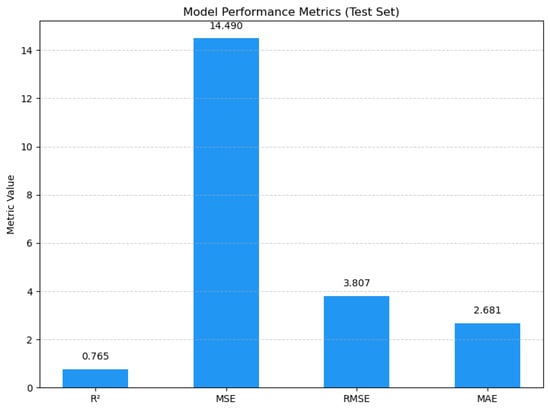 Coefficient of determination (R2): The model achieved an R2 value of 0.7647, indicating that approximately 76.47% of the variance in the target variable was explained. This demonstrates strong fitting capability and good predictive performance.