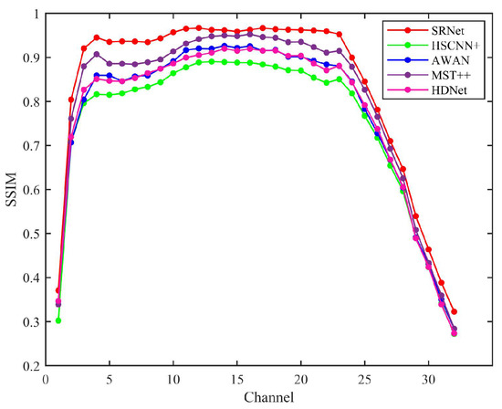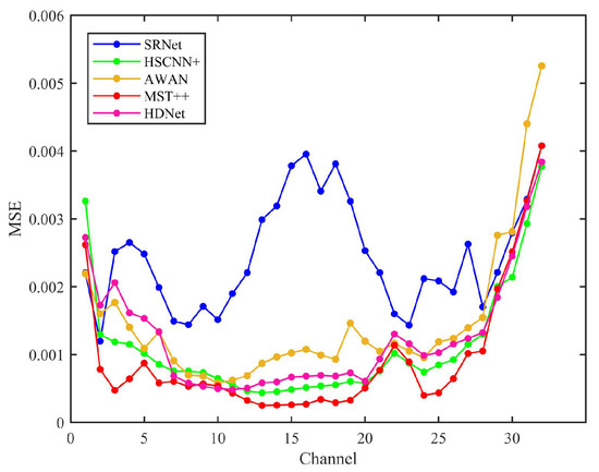 During the training process, to ensure both the integrity of the overall structure and the accuracy of individual pixels, we set α and β to 1. The MSE (mean squared error) loss function enforces precise spectral reconstruction through direct pixel-wise penalization of deviations between reconstructed and ground-truth reflectance values.