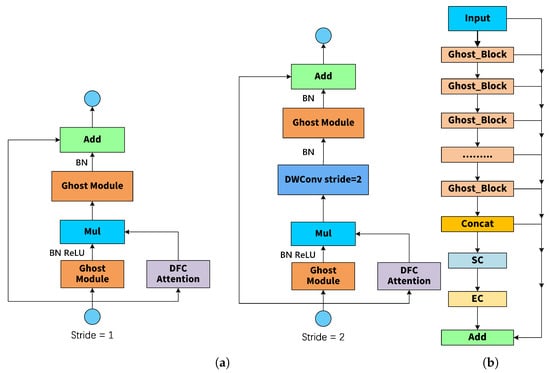 (a) Architecture of the Ghost_Block module; (b) Architecture of the Ghost_HGBlock module.