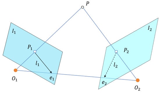 As illustrated in Figure 2, which shows the epipolar geometry, given a matched pair of points and from the left and right images, the epipolar geometry imposes that should lie on the epipolar line in the right image, and vice versa for and in the left image, where is the fundamental matrix []. To achieve robust verification, we measure the symmetric epipolar distance (SED) as []