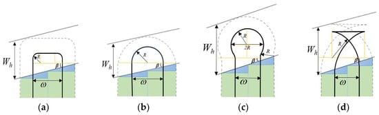 (2) Turning Radius Constraint: The minimum turning radius of agricultural machinery limits the curvature radius of the turning path, so the minimum turning radius (R) must be considered during path planning. This constraint can be addressed by reserving space through the derived headland width (Wh), ensuring the feasibility of the machinery’s turning maneuvers. Different turning patterns impose varying requirements on the headland width. When the machinery adopts a bow-shaped turn, the turning radius (R) is less than half of the working width (ω). In the case of a semicircular turn, the turning radius (R) equals half of the working width ω. For bulb- or fishtail-shaped turns, the turning radius (R) must exceed half of the working width (ω).