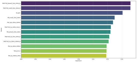 The contribution of the original features to the principal components used for training was assessed to identify the variables most influential in capturing the dataset variance. Figure 12 presents the top 12 original features ranked by their contribution via PCA loadings (20% of the total variance). This provides insight into which measured variables most strongly distinguish normal from anomalous conditions and enhances the interpretability of the Random Forest model.