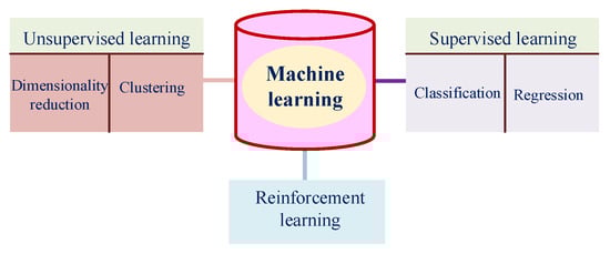 The AI method aims to mimic human intelligence, which involves ML, NN, and DL subsections. For this method, the BO algorithm is employed to estimate the output specifications for any given input data by reducing the error function (i.e., loss function). As Figure 4 shows, the ML is divided into three subsections: supervised learning, unsupervised learning, and reinforcement learning (RL). More descriptions regarding each of the learning methods are presented in [47,48].
