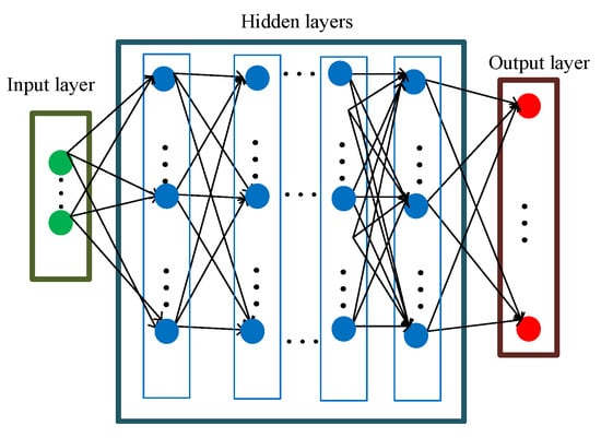 The structure of any NN can be either a shallow neural network (SNN) or a deep neural network (DNN), including the input layer, hidden layers(s), and output layer. The number of hidden layers will cause the construction of either the SNN or DNN structures. Figure 5 presents the general configuration of DNN, including the input layer, hidden layers, and output layer. Any network can be trained by firstly achieving a suitable amount of data (i.e., training, validation, and testing data), and then by determining the specification(s)/parameter(s) for input and output layers, respectively. The training procedure for networks is described more in [49]. The intelligence-based networks are able to both handle uncertainty and analyze a large amount of data for estimating outcomes [50]. For any reported problems, selecting the appropriate specifications for the input layer, output layer, and the topology of hidden layers can result in accurate predictions and optimizations.