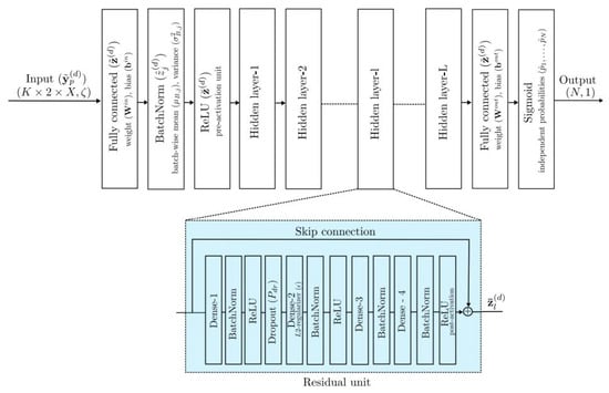 In [78], a pre-activated residual NN-based multi-user detection is presented (see Figure 10). The presented network leads to solving the sparse signal recovery problem in massive machine-type communications. The beam prediction NN is presented in [79] for beam management in non-cooperative mm-wave systems. The novelty of this work relies on the execution of fewer training samples in comparison with the conventional methods, in which deep regularized waveform learning is employed. In [80], a deep reinforcement learning method is performed based on the deep deterministic policy gradient methodology. This method is able to comply with channel variations, resulting in improved secrecy capacity of the authorized receiver. Figure 11 presents communication channels with the presented model, leading to outperforming the overall performances, in which the intended recipient refers to BOB and the eavesdropper refers to EVE.