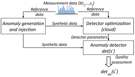 All measurement data collected to date in our TASK cloud instance are delivered to the input of the module that implements a selected ML model, which is systematically fine-tuned with the data. As a result of this process, a set of new detector parameter values (e.g., neural network weights), , is determined. If the results of anomaly detection obtained for the newer version are better than the results obtained so far, the new set of parameters is, if possible, sent back to the existing sensors of the ecosystem as an update to their software, or is set in the software of all newly installed sensors. In both cases, involving the Data Free and Life-Long Learning schemes, the quality of anomaly detection is assessed with respect to reference signals, as described later in Section 4.