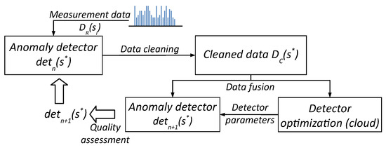 Due to the limited computing resources of the end device (e.g., a measurement sensor), development of its software requires support from an external entity, such as a computing cloud. This is particularly important when ML models used by anomaly detectors require the ability to continuously evolve, enabling increasingly better cleaning of measurement data time series as knowledge about the monitored phenomena is gradually accumulated across the entire measurement ecosystem. This knowledge should be periodically redistributed, starting from the initial configuration of the detector parameters used by the sensors in the process of cleaning raw measurement data based on previously acquired knowledge about the monitored phenomena, and then updating them regularly during the fusion of data from multiple sensors in subsequent cycles. The updated detector parameters can then be transmitted back to the previously installed measurement sensors (when their communication module enables the receiving of data from the UAV nomadic gateway) or used in the software of the next-generation (improved) sensors.