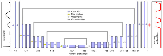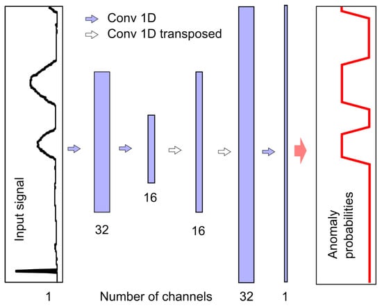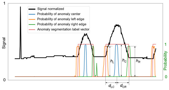 In this way, eight models were trained: two for each of the four anomaly types shown in Figure 1. Each model returns the probability of the anomaly center or its left edge occurring in a given signal fragment. The probability of the right edge occurring is determined by applying the input signal with samples in reversed order to the ANN-Edge model.