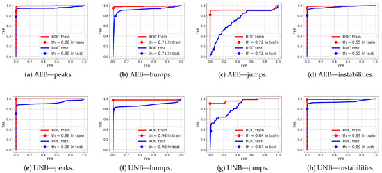 ROC curves for anomaly segmentation in temperature (T) signals are presented in Figure 12, in moisture (M) signals in Figure 13, and in pH signals in Figure 14.