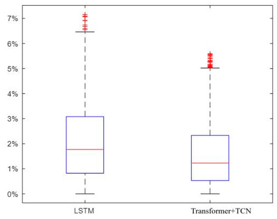 In order to better evaluate the effectiveness of the proposed algorithm, a step estimation model based on traditional LSTM was trained on the same training and validation sets and compared with the step estimation model proposed in this paper on the same test data. As shown in Figure 6, the prediction errors of the traditional LSTM model and the model proposed in this paper were compared. The step estimation model based on LSTM had an error of 2.13%. In comparison, The step length estimation model error of Transformer+TCN is 1.61% and the step length estimation accuracy is improved by 24.41%. So The step length estimation model of Transformer+TCN is accurate than the traditional LSTM neural network.
