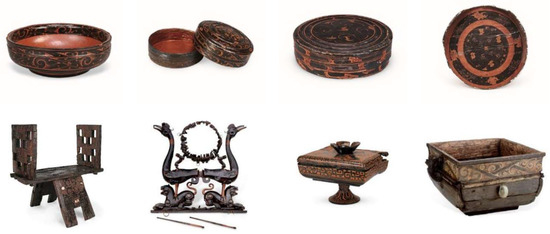 - Zheng, Z.F.; Du, Q.M. Digital protection and development strategies for Chu lacquerware. Packag. Eng. (Art Des. Ed.) 2021, 40, 306–311. [Google Scholar]