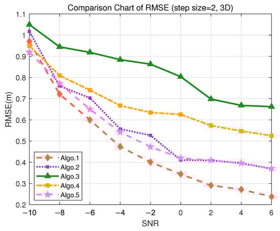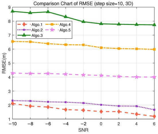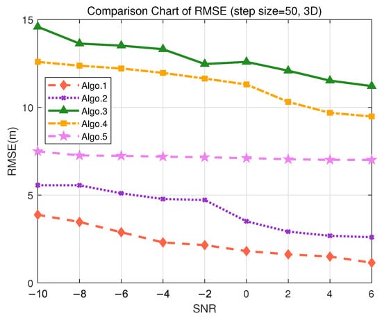 Figure 9. Comparison of RMSE performance in the S3 (3D) scenario. (Algo.1: PE-MSRN; Algo.2: CNN; Algo.3: FCNet; Algo.4: FE-FCNet; Algo.5: PE-FCNet.).