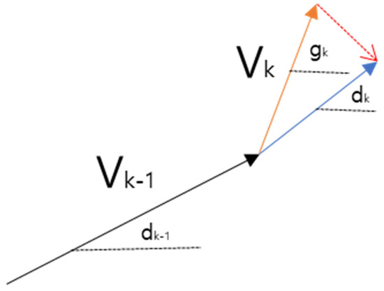 In PF-based path planning, the direction and magnitude of a vehicle’s movement are determined by gradient descent. Gradient descent is a representative optimization algorithm that searches for the minimum of a function by iteratively moving in the direction of the steepest descent—that is, the negative gradient. When applied to PF-based path planning, this method enables a vehicle to avoid regions of high potential (risk) by moving in the direction where the potential value decreases most rapidly.