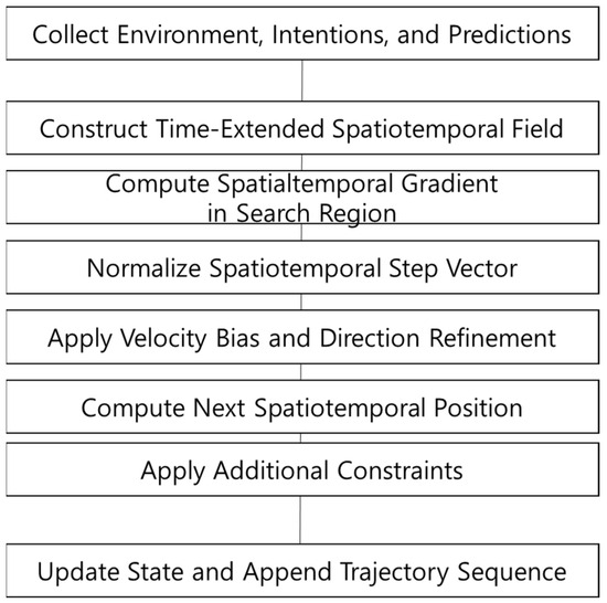 Next, we explain how the temporal dimension is integrated into spatial coordinates to construct a spatiotemporal potential field in (x, y, t) space. This time-extended formulation allows the field to reflect the evolution of traffic and risk over time, enabling predictive path generation.