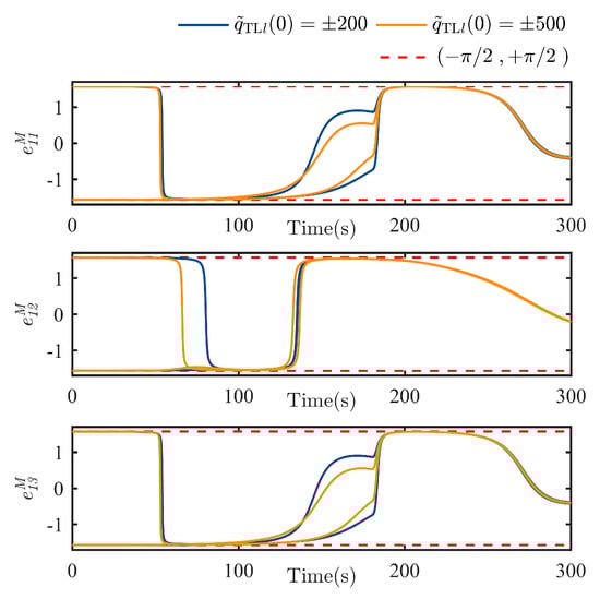 Further in Figure 7, the responses in each transformed TT error channel can be always kept in the open set , which verifies the conclusion given in Equation (41), namely holds for . According to the transformation given in Equation (15), the intersection between arbitrary and the open set implies that the intersection between the corresponding TT error and boundaries .
