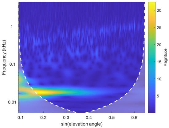 Subsequently, wavelet transform is applied to the resampled data using the Morlet wavelet function, which derives from a combination of Gaussian and sinusoidal functions and is particularly well-suited for environmental analysis [21]. Frequencies are divided logarithmically, wavelet transform is performed, and the time-frequency map (Figure 5) of the residual SNR is evaluated.