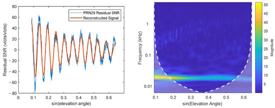 Satellite 29: (Left) Residual SNR; (Right) Wavelet time-frequency map.
