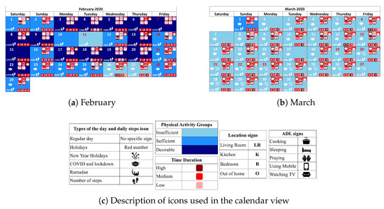- Early spotting of behaviour changes: Gaining a thorough understanding of individuals’ daily patterns and behaviour evolution allows for the timely detection of deviations, particularly valuable in monitoring conditions such as dementia and Alzheimer’s disease. In these cases, labelling daily behaviours as healthy or unhealthy and discovering the clusters that deviate from health guidelines could assist in identifying the main reasons for behaviour changes. Also, visualisation tools like the calendar and timelines can illuminate the onset of changes. Moreover, by harnessing online data collection, these types of behaviour analysis and monitoring approaches support the prompt identification of behavioural shifts, paving the way for early medical interventions that have the potential to impede the progression of diseases. This proactive strategy enhances our ability to address health concerns at an early stage, contributing to improved outcomes and quality of life for individuals affected by these conditions.