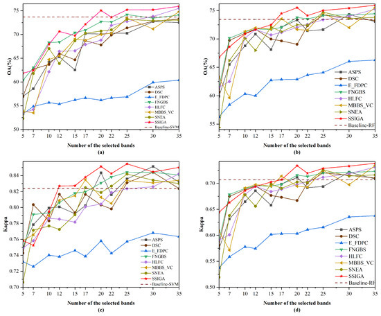 Table 5. Results obtained by the proposed SSIGA and other methods using RF and SVM classifiers on Indian Pines, Botswana, and KSC datasets (%).