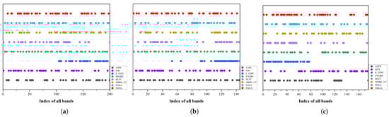 Ranking-based methods assign ranks to spectral bands based on predefined criteria and subsequently select the top-ranked bands to constitute a band subset. Although this method is effective in identifying promising subsets, it tends to ignore correlations between bands, which may lead to redundancy between selected bands [34]. Clustering-based methods treat each spectral band as an individual data point and group spectral bands with similar characteristics into a cluster. Then, from each group, a representative spectral band is selected according to specific evaluation criteria to form the final subset of spectral bands [35,36]. This strategy effectively decreases the correlation between bands, thus reducing the redundancy of the selected bands. However, since the selected bands come from different clusters, clustering-based methods can overemphasize the individual importance of the bands while neglecting the overall performance of the selected band subset [37].