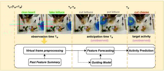 LTA plays a pivotal role in sensor-driven intelligent systems by inferring future behavioral states from limited video sequences [2]. As illustrated in Figure 1, the LTA task involves analyzing observable video segments from an initial time to an endpoint , aiming to predict the activity state at a future time , where the prediction interval is defined as , representing the unseen segment. The complexity of this task stems from multiple factors, including objective challenges such as dynamic environmental contexts and sensor-induced noise, as well as subjective factors, including varied manifestations of the same activity and diverse intentions driven by individual differences.