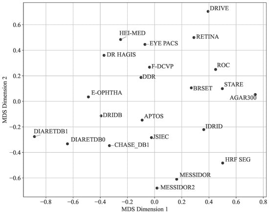 The following supporting information can be downloaded at: https://www.mdpi.com/article/10.3390/s25185658/s1, Figure S1: Average color histograms (RGB and grayscale) and box plots of key statistical features for all images in the AGAR300 dataset. Figure S2: Average color histograms (RGB and grayscale) and box plots of key statistical features for all images in the APTOS dataset. Figure S3: Average color histograms (RGB and grayscale) and box plots of key statistical features for all images in the BRSET dataset. Figure S4: Average color histograms (RGB and grayscale) and box plots of key statistical features for all images in the CHASE DB1 dataset. Figure S5: Average color histograms (RGB and grayscale) and box plots of key statistical features for all images in the DDR dataset. Figure S6: Average color histograms (RGB and grayscale) and box plots of key statistical features for all images in the DiaRetDB0 dataset. Figure S7: Average color histograms (RGB and grayscale) and box plots of key statistical features for all images in the DiaRetDB1 dataset. Figure S8: Average color histograms (RGB and grayscale) and box plots of key statistical features for all images in the DR HAGIS dataset. Figure S9: Average color histograms (RGB and grayscale) and box plots of key statistical features for all images in the DRiDB dataset. Figure S10: Average color histograms (RGB and grayscale) and box plots of key statistical features for all images in the DRIVE dataset. Figure S11: Average color histograms (RGB and grayscale) and box plots of key statistical features for all images in the E-Ophtha dataset. Figure S12: Average color histograms (RGB and grayscale) and box plots of key statistical features for all images in the Eye PACS dataset. Figure S13: Average color histograms (RGB and grayscale) and box plots of key statistical features for all images in the F-DCVP dataset. Figure S14: Average color histograms (RGB and grayscale) and box plots of key statistical features for all images in the HEI MED dataset. Figure S15: Average color histograms (RGB and grayscale) and box plots of key statistical features for all images in the HRF Segmentation dataset. Figure S16: Average color histograms (RGB and grayscale) and box plots of key statistical features for all images in the IDRID dataset. Figure S17: Average color histograms (RGB and grayscale) and box plots of key statistical features for all images in the JSIEC dataset. Figure S18: Average color histograms (RGB and grayscale) and box plots of key statistical features for all images in the MESSIDOR dataset. Figure S19: Average color histograms (RGB and grayscale) and box plots of key statistical features for all images in the MESSIDOR2 dataset. Figure S20: Average color histograms (RGB and grayscale) and box plots of key statistical features for all images in the Retina dataset. Figure S21: Average color histograms (RGB and grayscale) and box plots of key statistical features for all images in the ROC dataset. Figure S22: Average color histograms (RGB and grayscale) and box plots of key statistical features for all images in the STARE dataset.