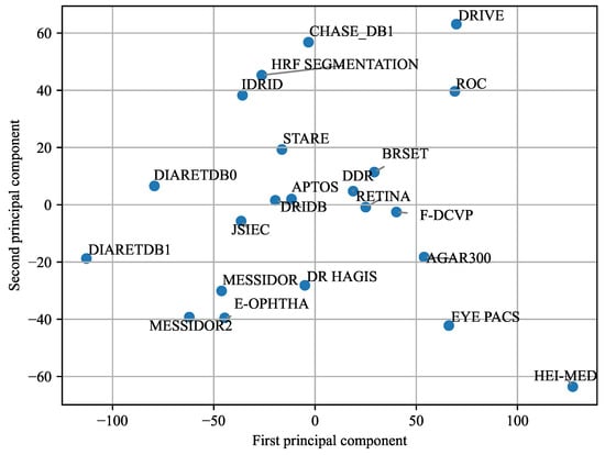 - For segmentation tasks: Favor datasets with pixel-level annotations and central positioning in the PCA space (e.g., DRiDB and IDRID for lesions segmentation, HRF Segmentation and DRIVE for blood vessel segmentation). Use caution when incorporating outlier datasets like AGAR300, as their distinct characteristics may hinder generalization.