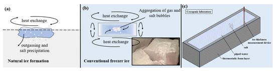 Natural icing and traditional ice-making methods. (a) Natural icing. (b) Traditional ice production. (c) Improved ice-making containers.