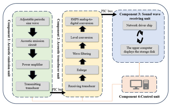 The measurement system was designed to quantify the shear wave velocity and longitudinal wave velocity of sea ice under controlled conditions, optimizing the measurements of Kim and Vogt et al. [23,24,25]. The system consists of four main components (Figure 3).