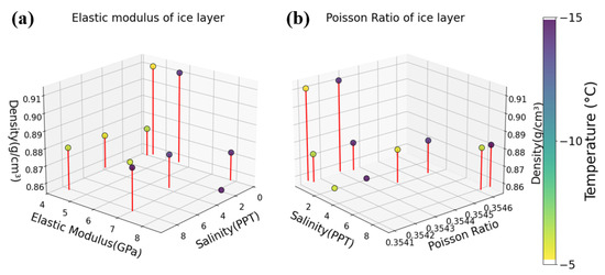 However, discrepancies were observed for one-year sea ice density and elastic modulus in the −10 °C to −15 °C range, which were lower than field-reported values. These differences may stem from two factors: