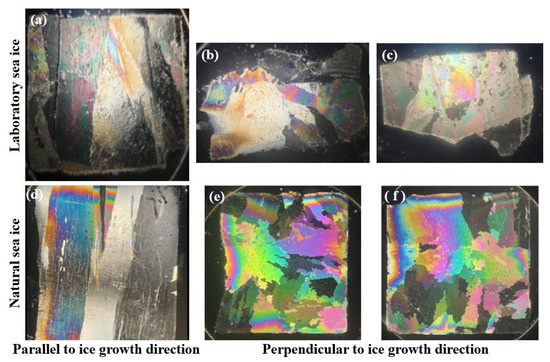 In this study, laboratory-simulated ice was classified into four types based on the observed general stabilization temperatures and salinities of different types of sea ice [20,21,22], as summarized in Table 1. The categorization here is intended only as a simple classification condition for the different types of ice that can be made in laboratory ice production. The type of cycle is determined primarily based on the temperature of the sea ice growth and decay cycle. The year of the sea ice is determined by the difference in salinity between one-year and multi-year ice.