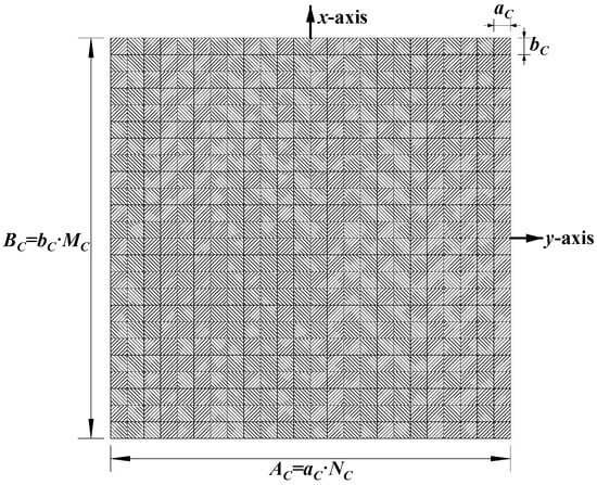 where L is the imaging range; (xa, ya) are the Cartesian coordinates of the a-th coding element on the coded aperture, as shown in Figure 2; and are those of the k1-th and k2-th scatterers on the imaging plane, as shown in Figure 3, respectively, with 1 ≤ a ≤ GA = MC × NC for the coded aperture and 1 ≤ k1, k2 ≤ ME × NE for the imaging plane.