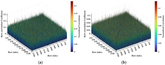 If the path length-induced phase difference vector per Equation (24) clusters around sparsely spaced, highly discrete specific values rather than spanning the full [0, 2π] range, the random phase-encoding efficacy degrades severely. Consequently, temporal independence quantified by the row correlation of RSM St deteriorates. Furthermore, for any pair of adjacent (both row-wise and column-wise) k1-th and k2-th scatterers on the imaging plane, if the relative difference between and