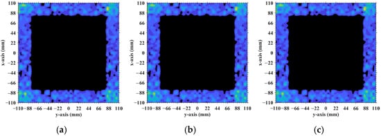 where SrCN×1 is the echo vector, StCN×K is the RSM comprising the elements per Equation (7), σ’ = [σ′1, σ′2, σ′3, …, σ′K]T is the scattering-coefficient vector with each element corresponding to each scatterer of the imaging plane, and wCN×1 is the noise vector. Target reconstruction essentially involves solving the non-homogeneous linear system per Equation (8) to determine the scattering-coefficient vector σ’.