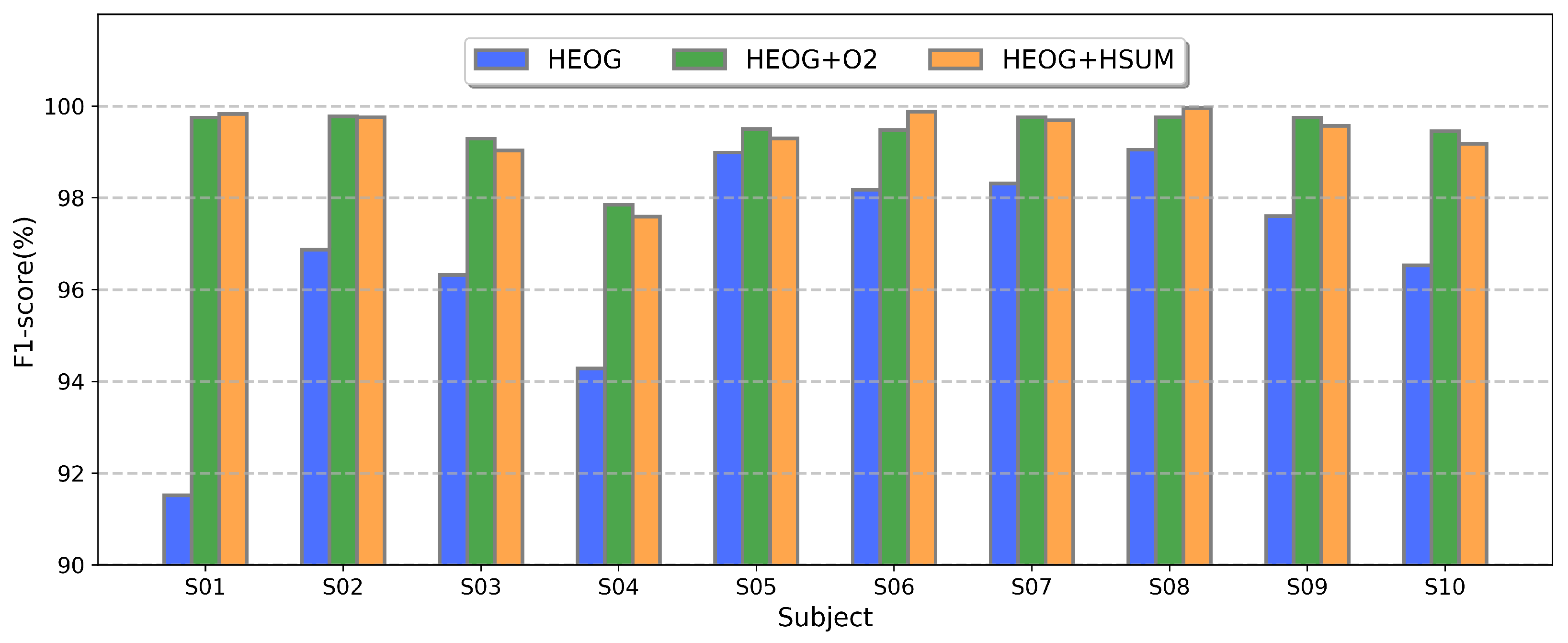- We validate that the HEOG+HSUM combination applied to the PMMCT model yields comparable performance to the HEOG + O2 combination, enabling accurate SEM detection with only dual single-channel HEOG electrodes, which enhances practicality in real-world driving scenarios.