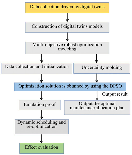 A maintenance system model for damaged equipment based on DT is constructed to provide real-time data input and a foundation for virtual–real mapping for the subsequent robust optimization model.
