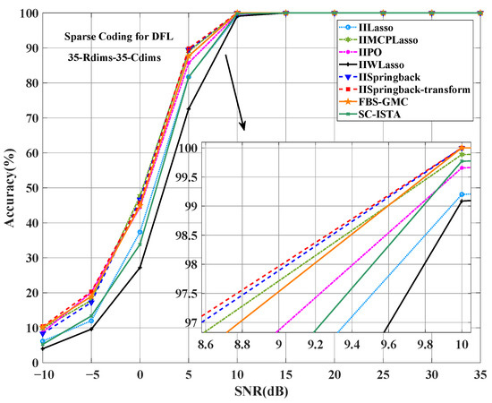 2. The experimental results demonstrate that, compared to existing advanced sparse coding models, the two models proposed in this paper (IISpringback and IISpringback-transform) show significant advantages in low-SNR environments: (a) Higher positioning accuracy: In indoor environments with a low SNR, such as SNR = −5 dB, the IISpringback-transform model achieved an accuracy of 84.94%, and the IISpringback model reached 84.28%, outperforming the third-ranked IIPO algorithm by 5.32 and 4.66 percentage points, respectively. This indicates that our models can maintain high accuracy even under poor signal conditions, showing their potential for practical applications. (b) Higher computational efficiency: Whether processing reduced-dimensionality data or non-reduced data, the processing time of our algorithm is significantly shorter than other algorithms, achieving optimal time efficiency. This is crucial for real-world scenarios requiring rapid response, such as real-time monitoring or emergency rescue.