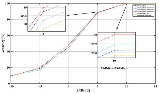 The experimental results indicate that at an SNR of −5 dB, the synthetic model’s accuracy is slightly higher than that of the model employing transform learning. However, this level of accuracy remains relatively low and lacks practical significance. At all other SNR levels, the model utilizing transform learning demonstrates superior accuracy, significantly outperforming the synthetic model.