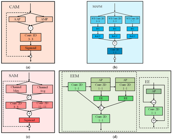 Block diagrams of the structures of each module: (a) CAM; (b) MAFM; (c) SAM; (d) EEM.