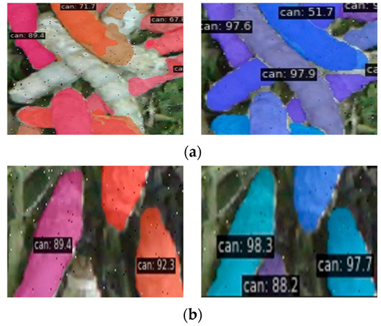 The segmentation results of two methods: (a) result of SOLOv2; (b) result of our method.