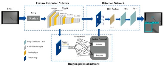 A faster R-CNN was developed using R-CNN [26] and Fast R-CNN [27]. It achieved the best results in the ILSVRV and COCO competitions of the year and became one of the leading target detection algorithms [28]. The main innovation of this algorithm is the use of a region proposal network (RPN) to generate RoIs instead of the selective search (SS) method, which overcomes the bottleneck in detection efficiency. Faster R-CNN consists of three modules: a feature extraction network, RPN, and detection network, as shown in Figure 1.