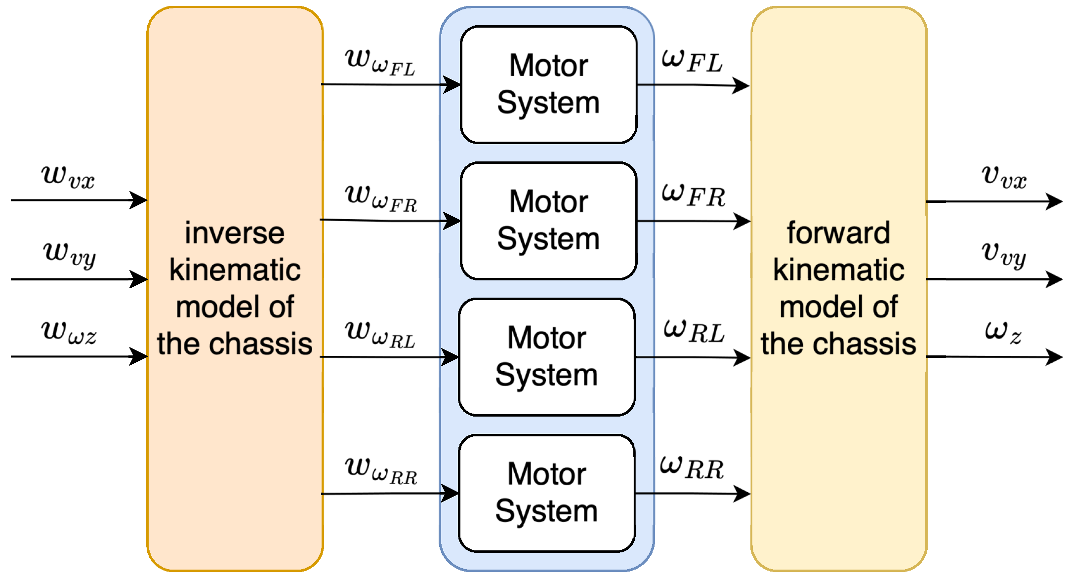 As described previously, the speed of each motor is regulated using a discrete PID controller. However, to enable coordinated motion of the entire