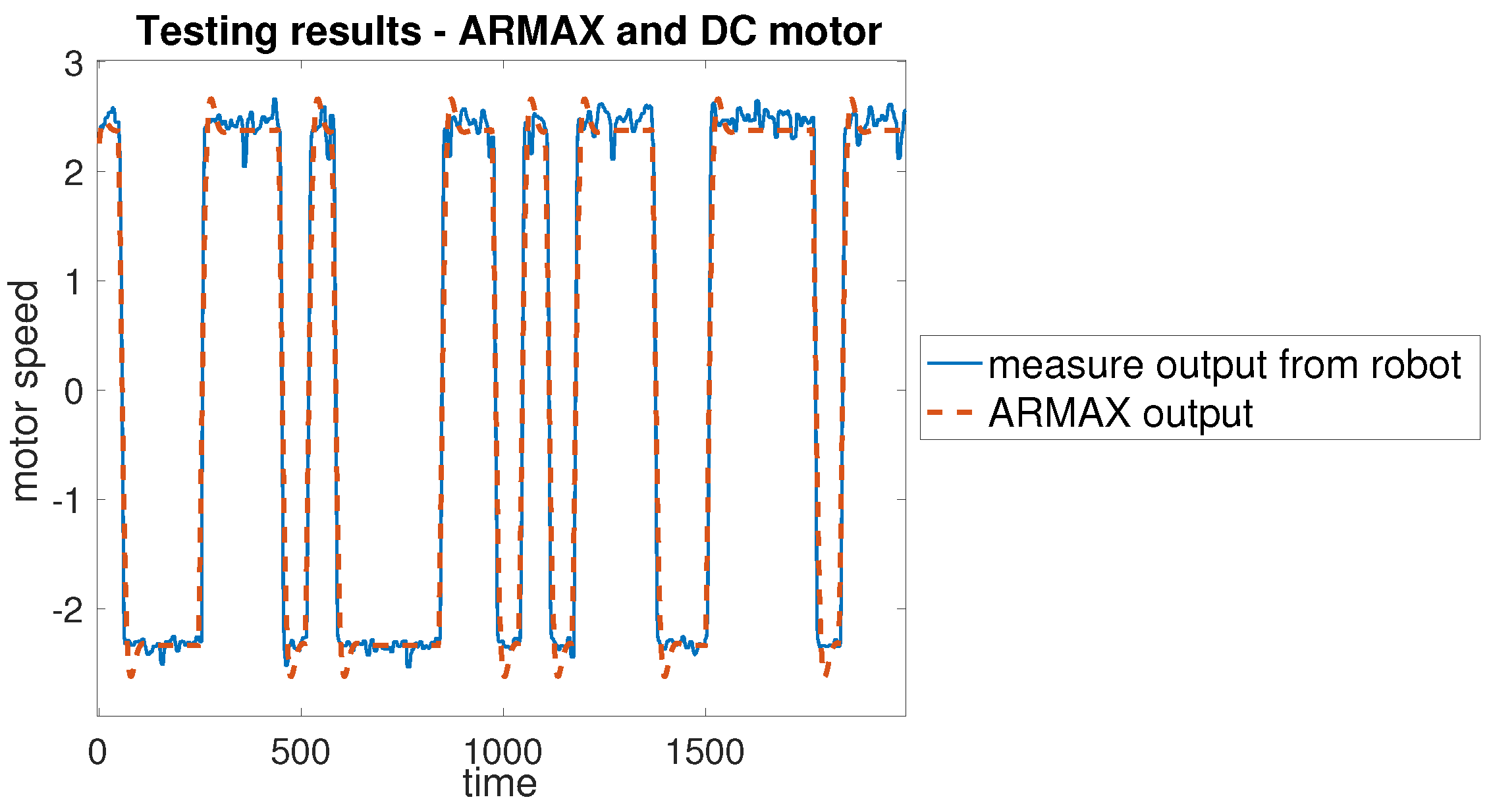 In order to identify the ARMAX model of the DC motor, input and output data were collected based on the setup illustrated in