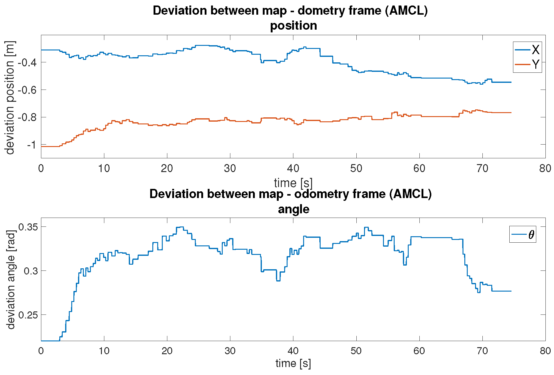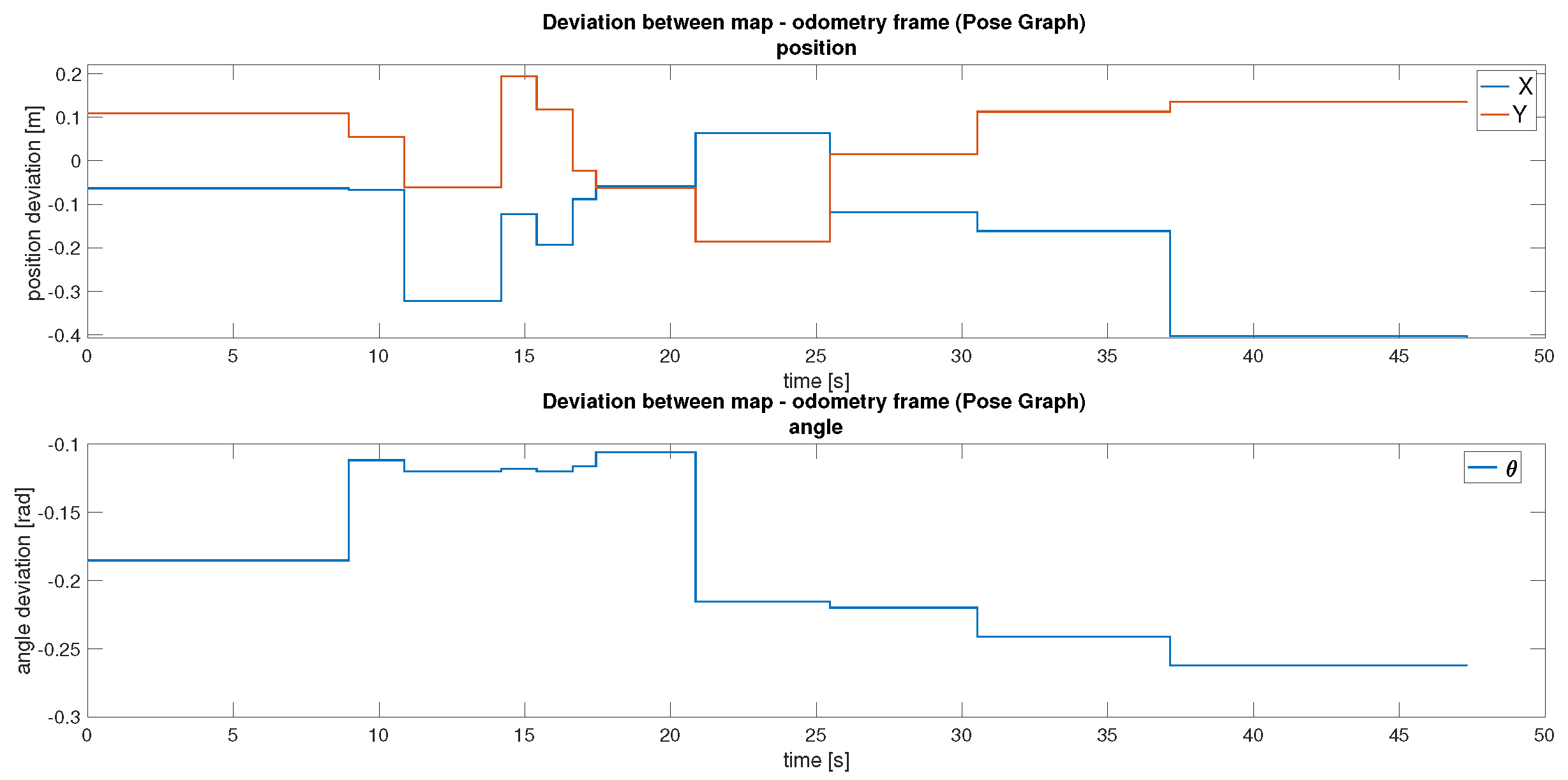 Figure 25. Although more computationally demanding than static-map localisation, this approach supports continuous updates in dynamic environments. The deviations between the map and odometry frames can be seen in